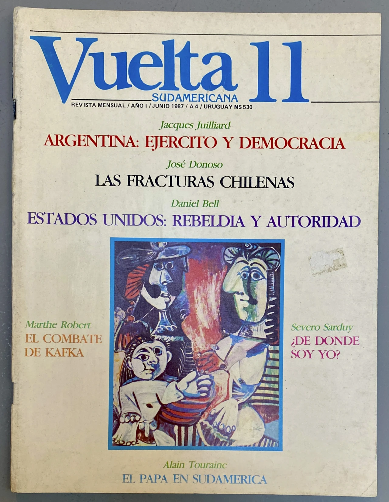 Revista mensual. Buenos Aires, Sudamericana. Director Octavio Paz. Subdirector: Enrique Krtuze. Año I - N° 1 de agosto de 1986 hasta el Año II - N° 17 diciembre 1987. Completa. Encuadernación de editor, ilustrada. Se trataba de una edición local de la revista mexicana Vuelta, fundada por Octavio Paz en 1976. Esta curiosa operatoria, poco frecuente en Latinoamérica, es justificada por el propio Paz en el editorial del primer número de Vuelta Sudamericana: “No es ni puede ser la misma revista que hacemos en México un grupo de escritores independientes; tampoco es una publicación distinta. Las dos revistas están unidas por afinidades literarias, estéticas y políticas; comparten no sólo un nombre sino un propósito; sus animadores y colaboradores son los mismos. Pero cada una responde a las circunstancias sociales y culturales de la región en donde se publican”. En esa presentación, Paz establecía una larga genealogía de intercambios culturales en Hispanoamérica: “Seguimos en esto a Darío, Martí, Lugones y a nuestros primeros «modernistas»; también a la abierta tradición de Sur, Contemporáneos, Taller, Las Moradas, Orígenes y otras revistas hispanoamericanas”.En enero de 1988, se anuncia para el mes de marzo la aparición del número 18 de Vuelta Sudamericana, que nunca llegó a aparecer. La crisis editorial argentina llevó a Sudamericana al borde la quiebra, y la revista fue cancelada.