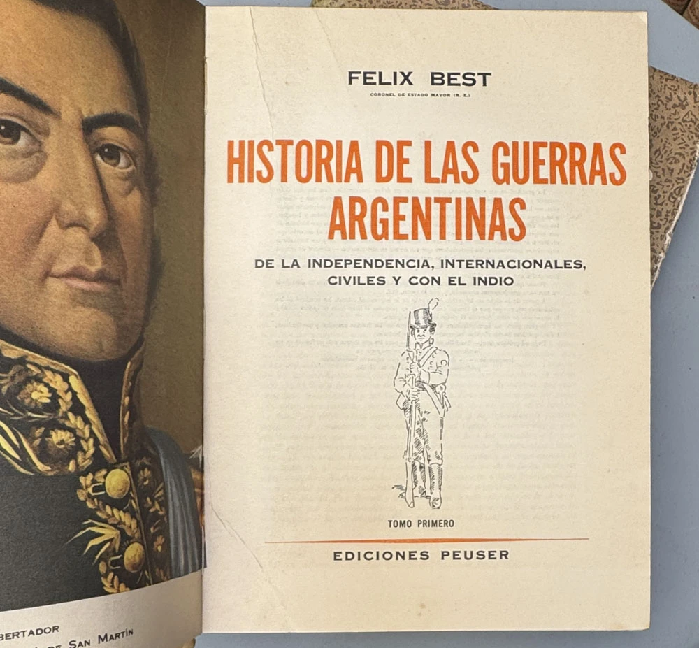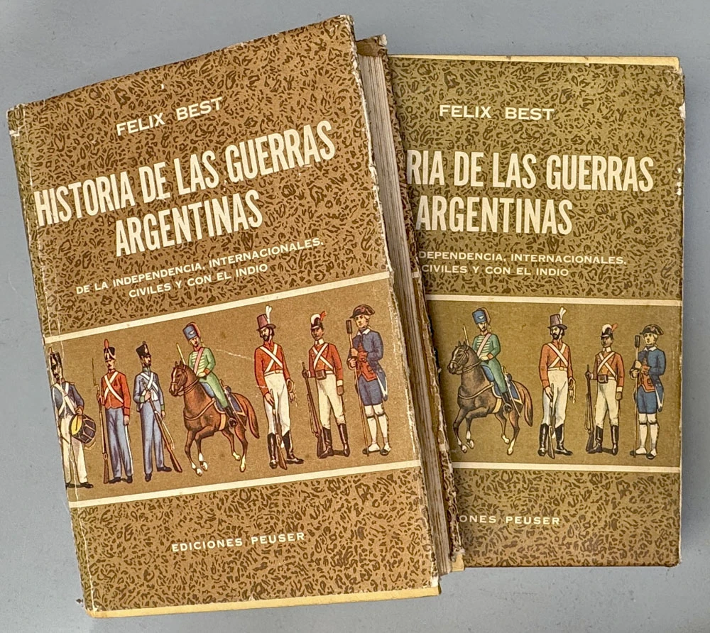 “Historia de las guerras argentinas. De la independencia, internacionales, civiles y con el indio”. Buenos Aires, Ediciones Peuser, 1960. 2v. In-4°. Tomo I 490 pp. Tomo II 442 pp. Manchas de óxido. Ilustrado. Encuadernación cartonaje de editor, con sobrecubierta gastada, con faltantes y roturas.