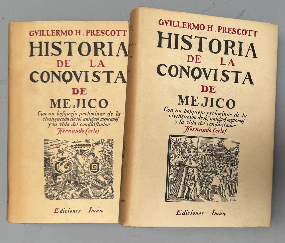 Buenos Aires, Ediciones Imán, 1944. 2v. In-4°. Tomo I, 467 pp.; Tomo II, 404 pp. Con un bosquejo preliminar de la civilización de los antiguos mejicanos, y la vida del conquistador Hernando Cortés. Ilustrado. Algunas ilustraciones y mapas plegados. Encuadernación cartonaje en plena tela con sobrecubierta, de editor.