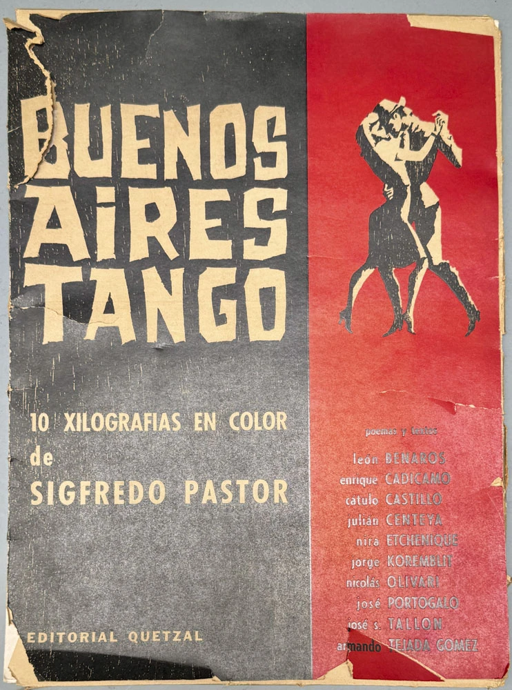 “El Siglo de Oro del Tango, compendio ilustrado de su Historia”. Con el Auspicio de la Secretaría de Cultura de la Nación y la Academia Nacional del Tango. Buenos Aires, Ferrer-Manrique Zago, 1996. 1v. In-4°. 215 pp. Profusamente ilustrado. Encuadernación cartonaje en plena tela, lomo con títulos en dorado. Con sobrecubierta original. Junto con: PASTOR, Sigfredo. “Buenos Aires Tango”. 10 Xilografías coloreadas con motivos de tango. 1v. In-F. Reproducciones a colores. Rústica original, dañada con roturas y faltantes. Deteriorada.
