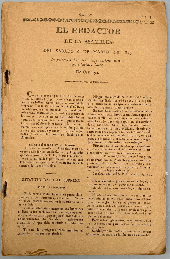 Facsímil. Nº2 del sábado 6 de marzo de 1813 hasta Nº 24 del lunes 30 de enero de 1815. Hojas sueltas, margenes dañados.